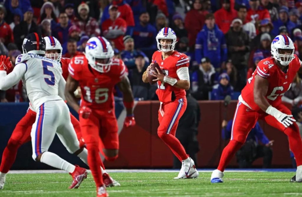 Josh Allen finished throwing 19-of-30 for 169 yards with two touchdowns and an interception in the win for Buffalo. James Cook had 71 yards on 14 carries on the ground, and Stefon Diggs had 100 receiving yards on 10 catches.
