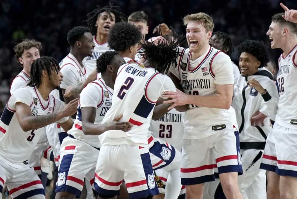 UConn won its sixth overall title and joined the 2006-07 Florida Gators and the 1991-92 Duke Blue Devils as just the third team to repeat since John Wooden’s UCLA dynasty of the 1960s and ’70s.