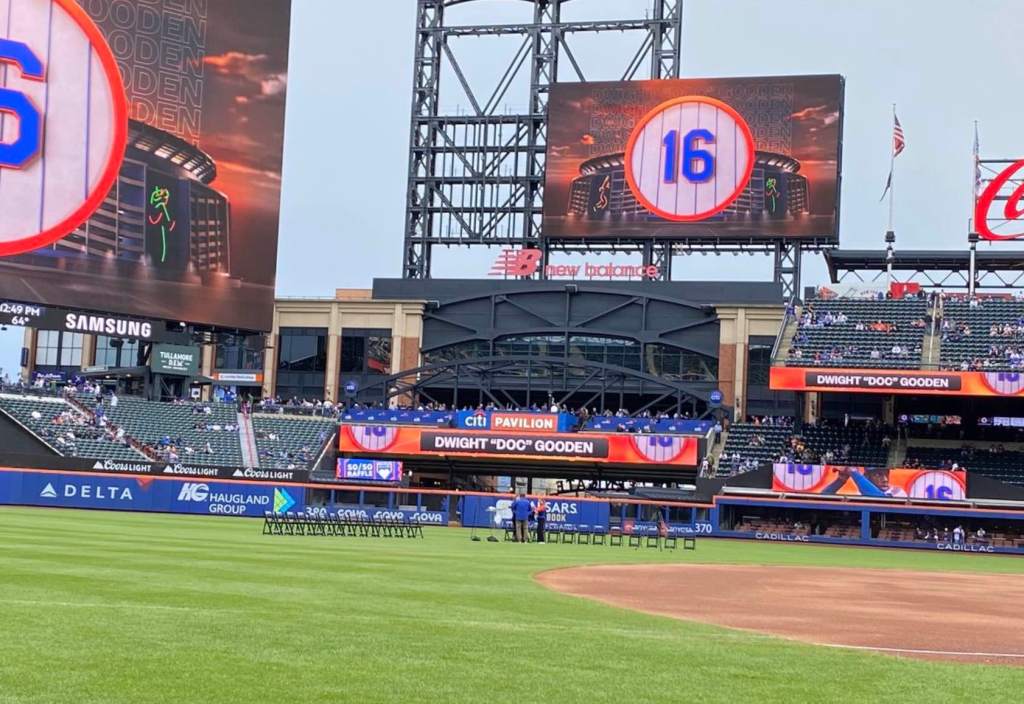 During his brief speech prior to Sunday’s game during an ill-timed rain shower, Gooden said he called the Mets following his two-year stint with the Yankees, which elicited a round of boos from the crowd. Gooden responded, “I’m always a Met.”