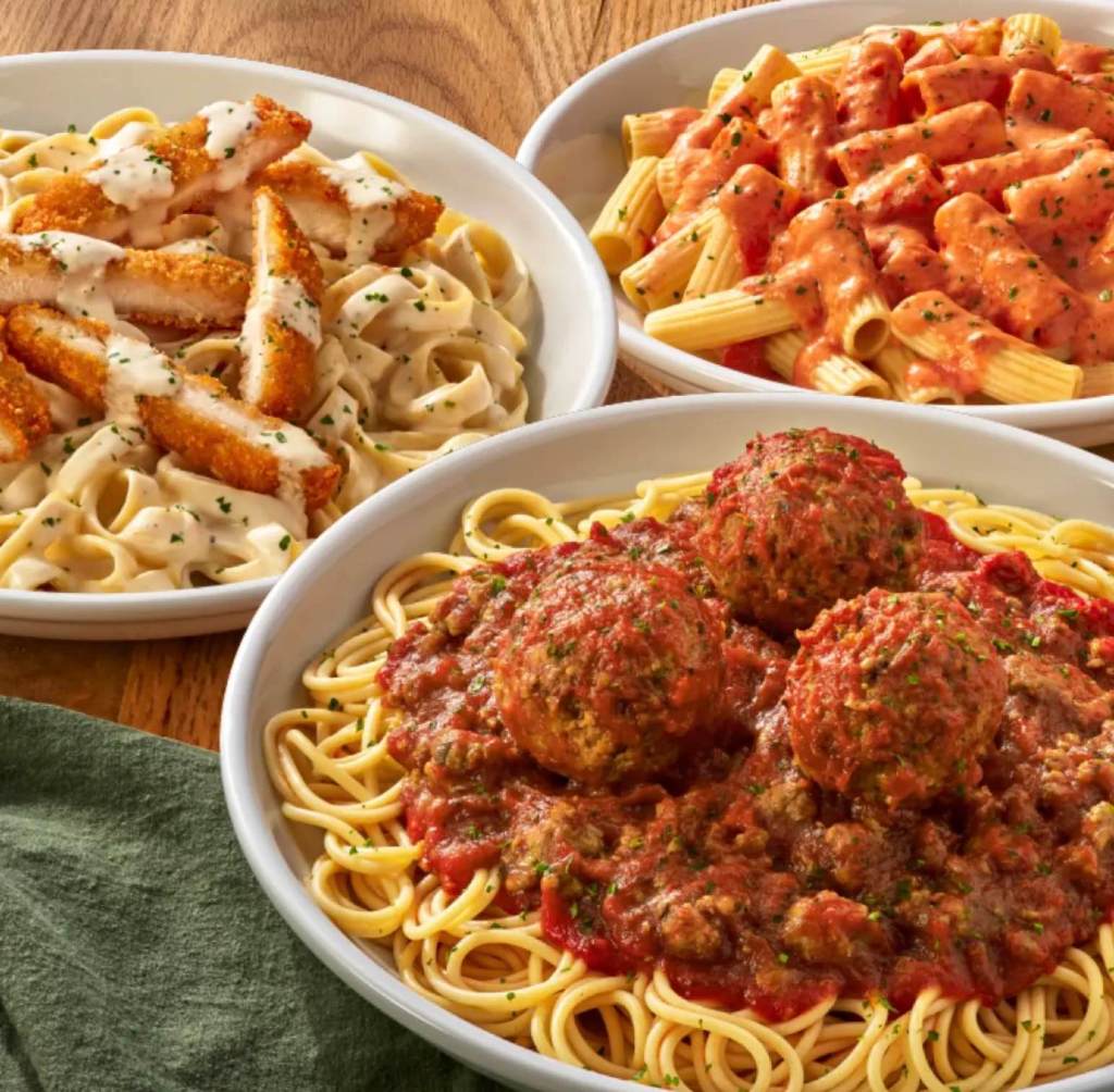 Customers can enjoy a selection of various pastas, sauces and proteins that add up to 80 different pasta-bilities of combinations — and include unlimited soup or salad and Olive Garden’s famed breadsticks.