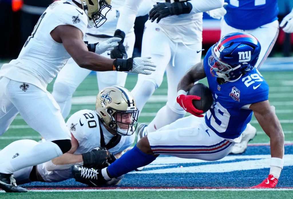 The Saints improve their record to 5-8, while the Giants fall to 2-11.