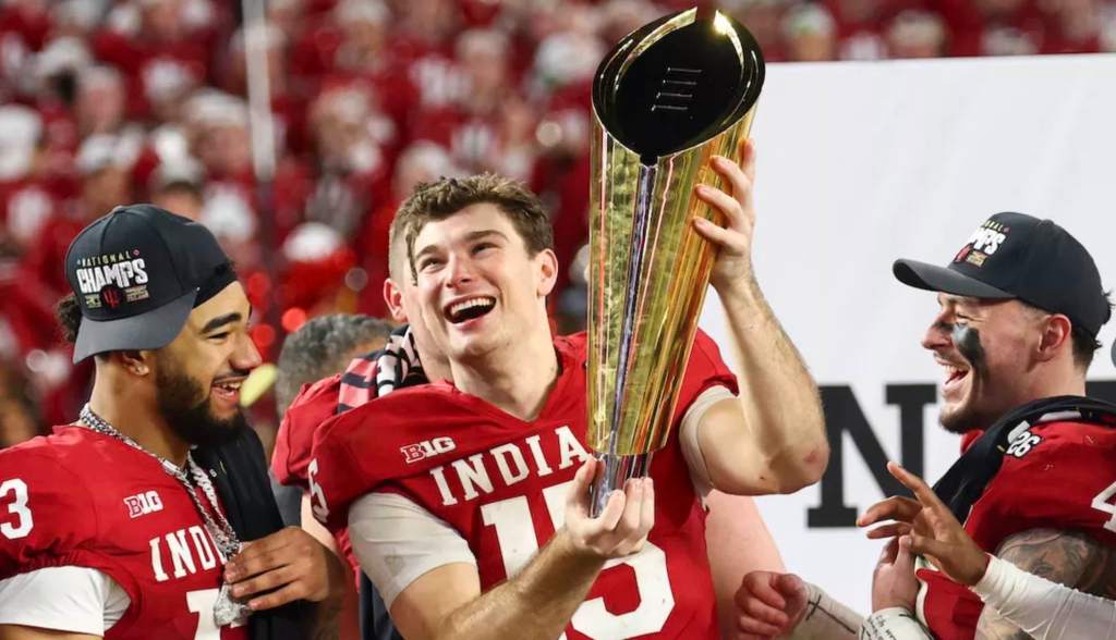 The redshirt junior threw for 3,535 yards, an NCAA-best 41 touchdowns and six interceptions on 273 of 379 passing in 2025, winning the national title and a slew of individual awards including the Heisman Trophy, College Football Playoff MVP, Associated Press College Football Player of the Year and Big Ten Most Valuable Player and being selected as a consensus All-American in 2025.
